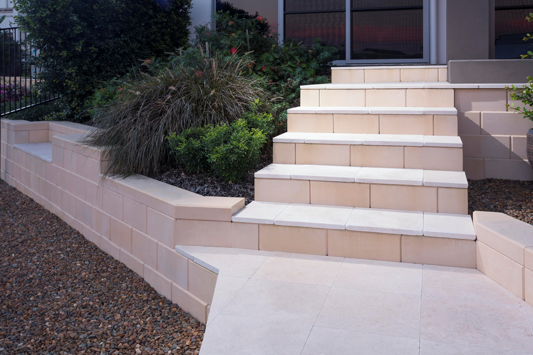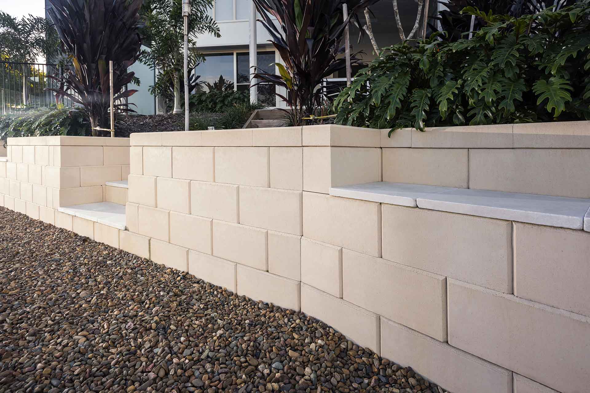 Austral Masonry’s Heron™ Retaining Wall Blocks are an ideal choice for retaining walls in gardens, other residential applications and commercial projects. The interlocking and dry stacked nature of the Heron™ blocks, makes them easy to install for the “Do It Yourself” landscaper, while their connection strength provides confidence on larger jobs. No matter what the project, the result is always an attractive and low maintenance retaining wall. The flexibility of the system provides tremendous scope, from edging to terraces, straight walls to curves.