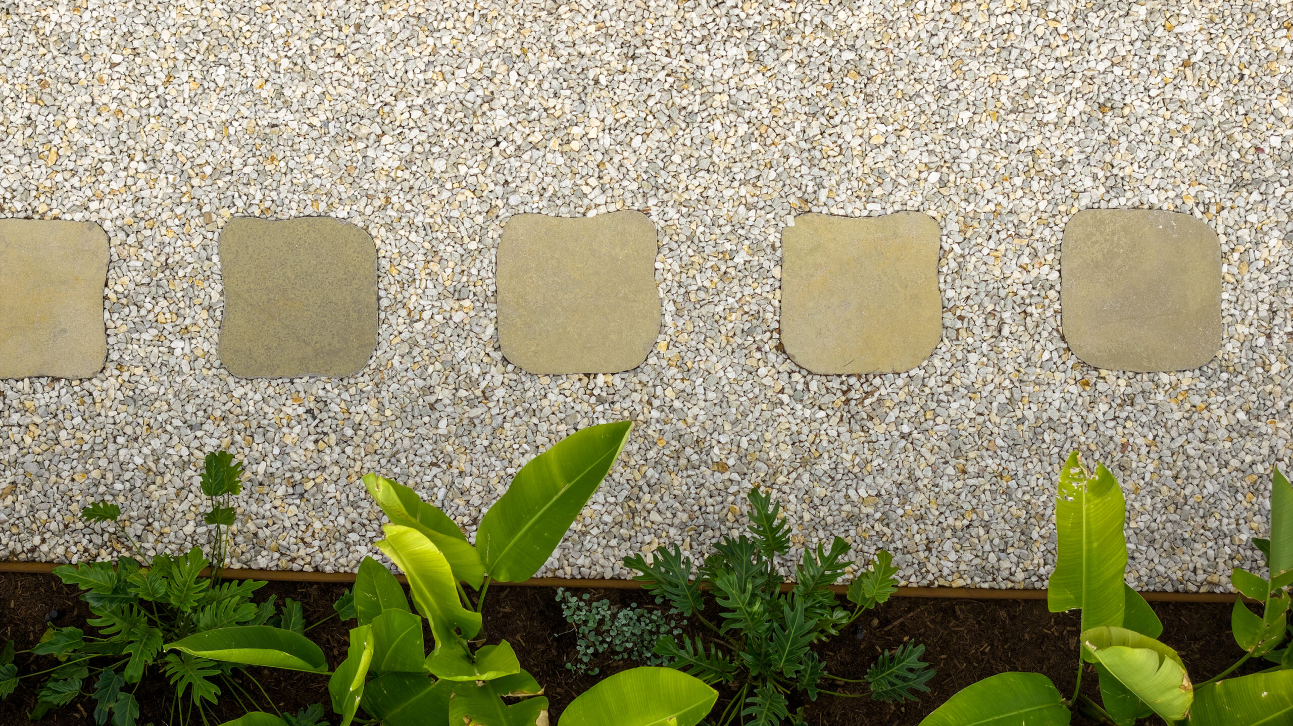 - Lay pavers and tap down level with rubber mallet. Leave a 3-5mm grout spacing.