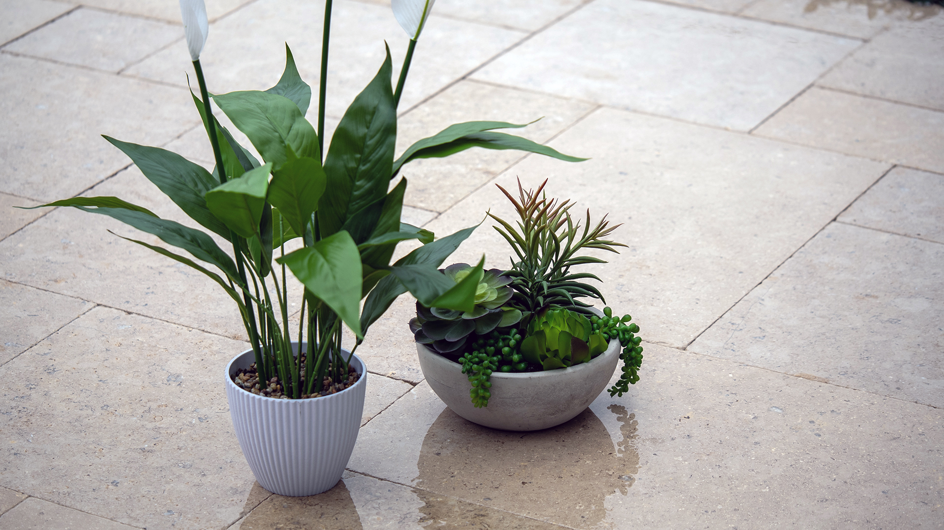 - Wet down pavers / tiles