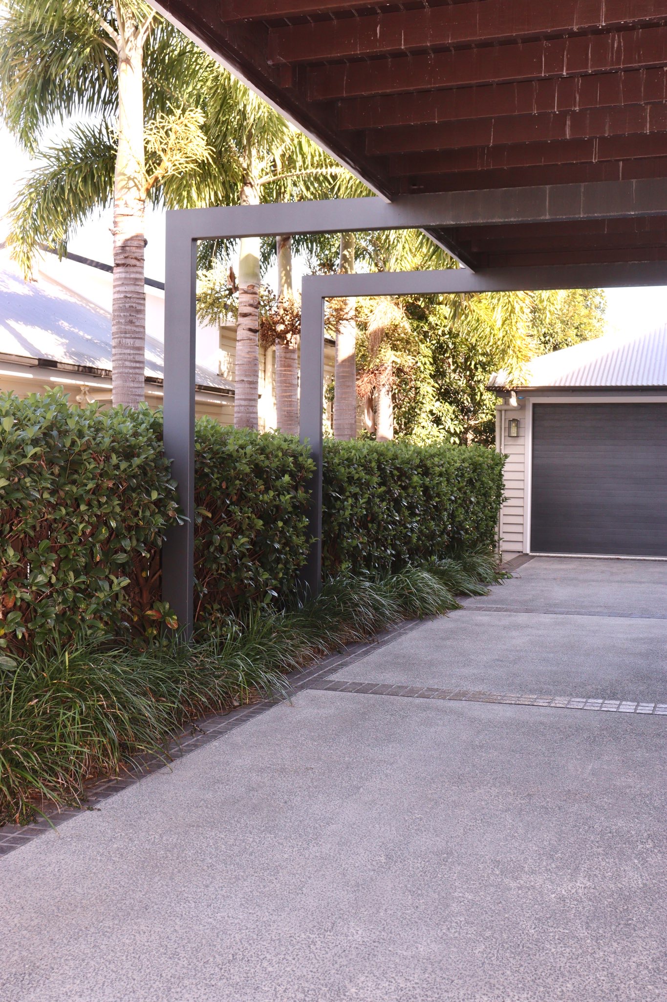 Laying should be done by a licensed tradesman or person competent in laying larger format pavers. Each paver must be individually laid and levelled. A minimum 4-6mm gap between pavers is recommended, as this allows for straight lines to be kept and prevents chipping of pavers. Do not transport pavers in wheelbarrow, as this will cause chipping. Do not stack pavers criss-cross on site as this may leave marks on pavers if left for a period of time. If laying on compacted road base (at least 75mm pedestrian areas only) allow for a 20mm layer of screeded bedding sand or medium river sand on top of the compacted road base for pavers to be bedded into and levelled as you go. If laying on concrete allow for at least a 15mm layer of adhesive or mortar for pavers to be bedded into and levelled as you go. It is advisable to wire brush the back of bullnose or pavers to remove any loose powder or dried slurry before gluing down. Remember to always blend pavers when using multiple pallets – do not lay pallet by pallet.