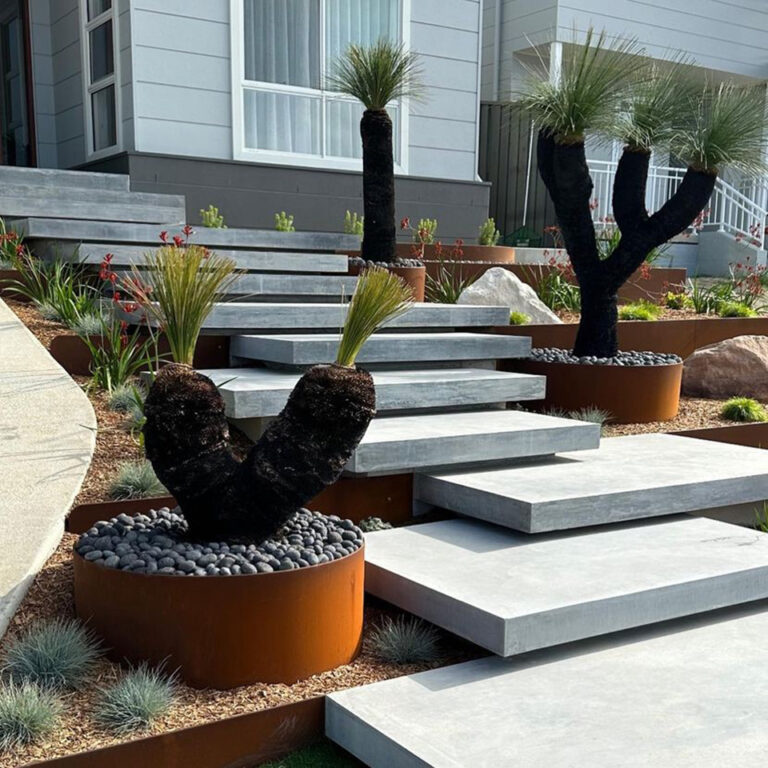 2. Developing a Protective Patina: The weathering steel used in SHAPESCAPER Redcor products will begin forming its protective rust “patina” over a couple of weeks and become fully weathered between 6 months and two years, depending on the exposure to moisture. Please note the use of strong acid or salt to accelerate the process will permanently damage the protective properties of weathering steel. While the patina is forming “rust coloured” run off may occur, care should be taken around porous surfaces travertine pavers and cement. Any leaching should be removed promptly, staining should be dispersed regularly by hosing the area clean, a light spraying of the weathering steel with water will also help speed up the patina process at the same time. A mild 10% solution of white vinegar applied to the run off area prior to washing down can be used for heavier staining.