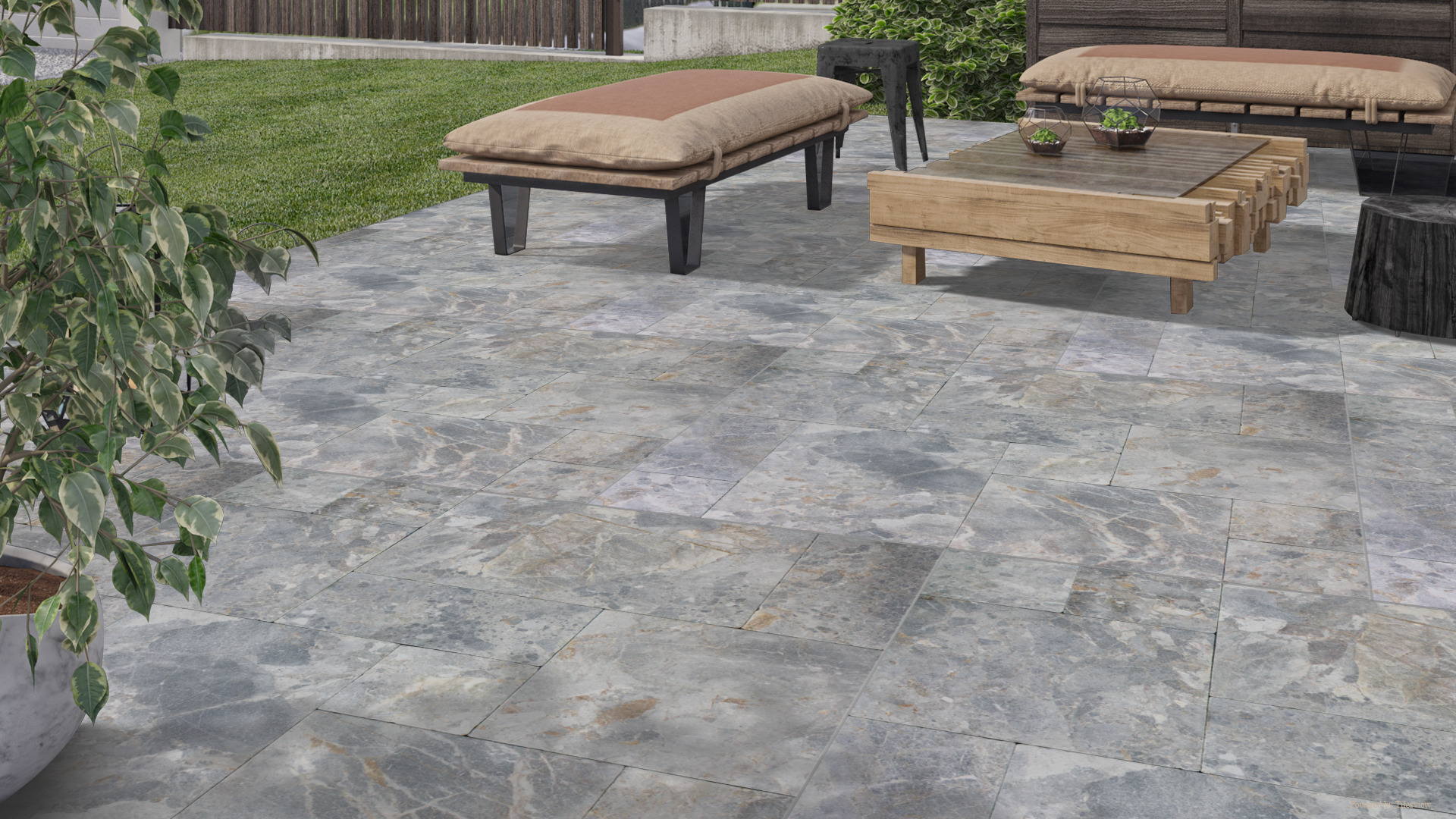 Silver Marble pavers are sandblasted and tumbled to create a smooth, yet slip-resistant finish with elegant veining and unique colourations. Characterised by cool silver tones, with clouds of blue and grey – they are ideal for pool surrounds, patios, courtyards, pathways, stepping stones and entertaining areas.
