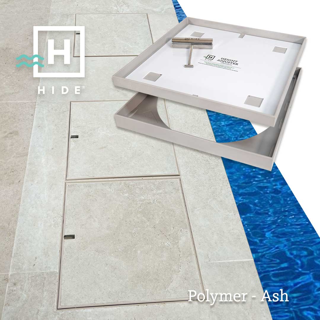The flush-fitting pool skimmer lid is easy to install and blends into the pool surround for a flawless upmarket finish every time. With a range of colours, depths and sizes to choose from, HIDE is the perfect solution to suit tile, stone and timber deck finishes.