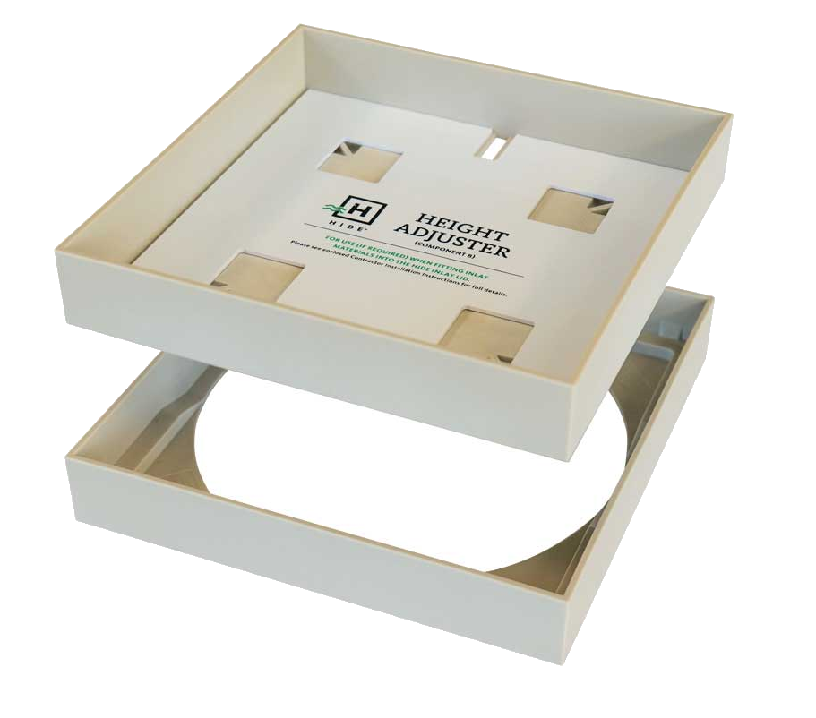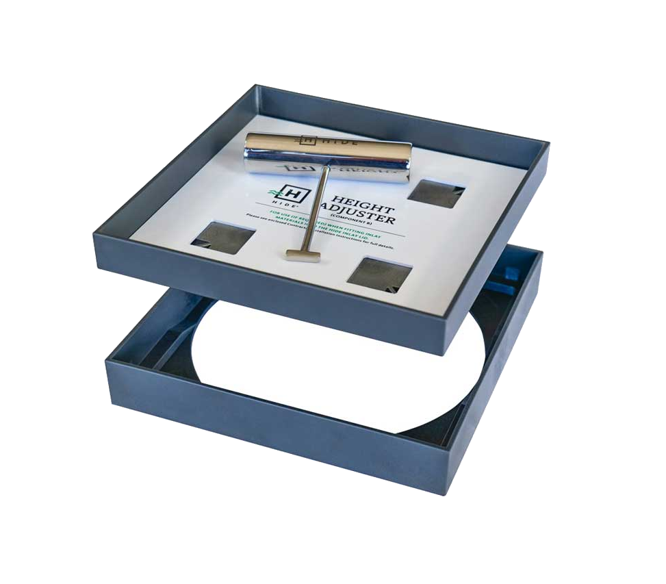 HIDE kits utilise industry-leading 316 Stainless Steel Lid combined with the Polymer Edge Protector. The Polymer EP insulates the stainless lid and does not require earthing. The polymer colour blends in with grout colours.