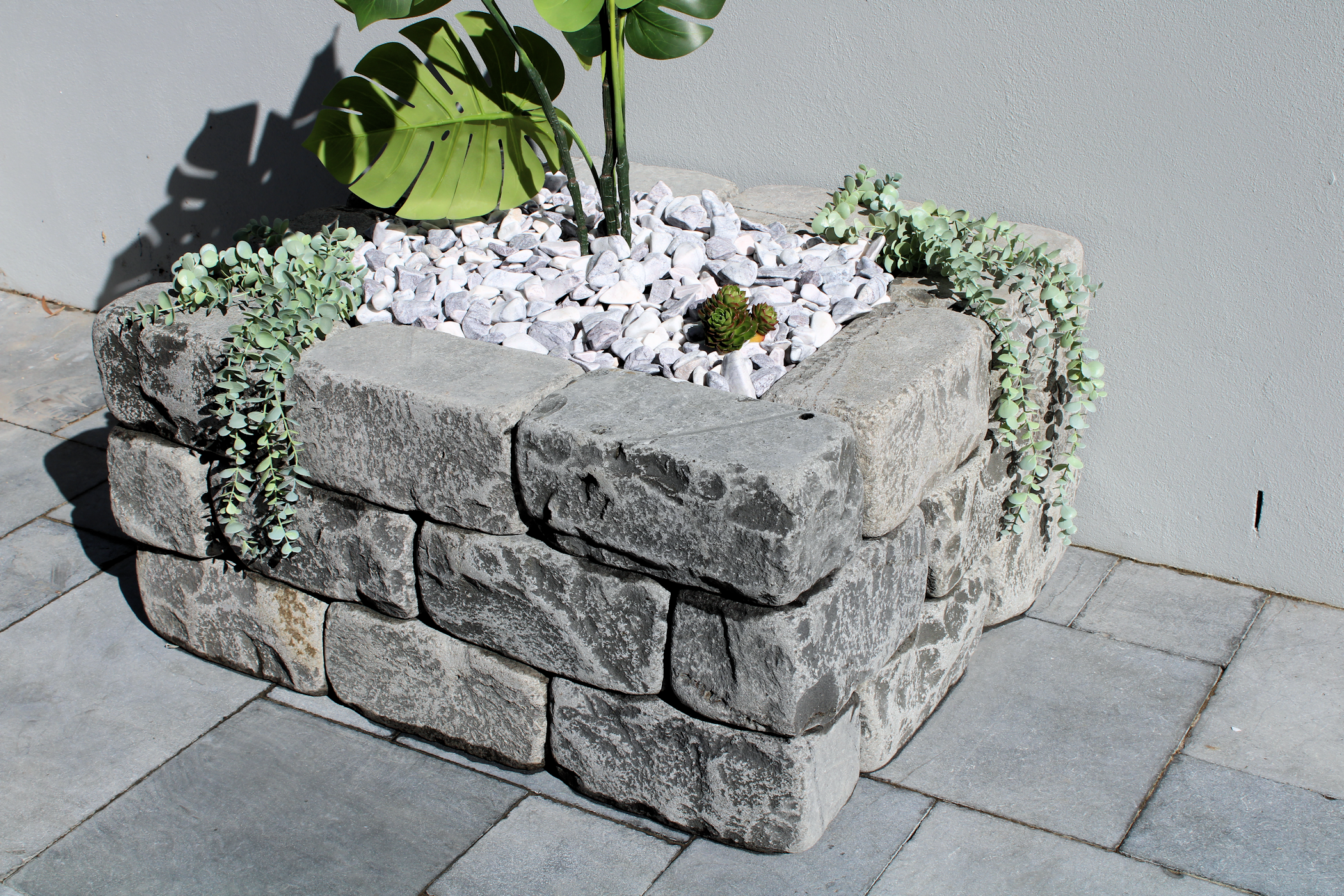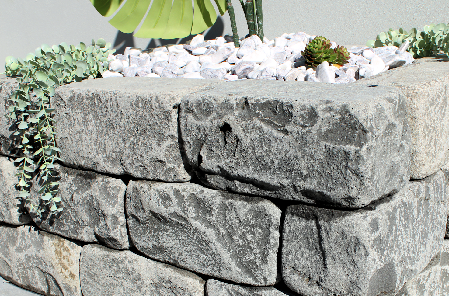 Stone garden edge blocks sourced from extremely dense and strong basalt stone. The blocks are tumbled to give a natural weather appearance. Lay them on their sides or vertically to create amazing natural looking garden edging and walls. Stone garden edge blocks can be glued* / mortared together to form small retaining walls up to3 blocks high.