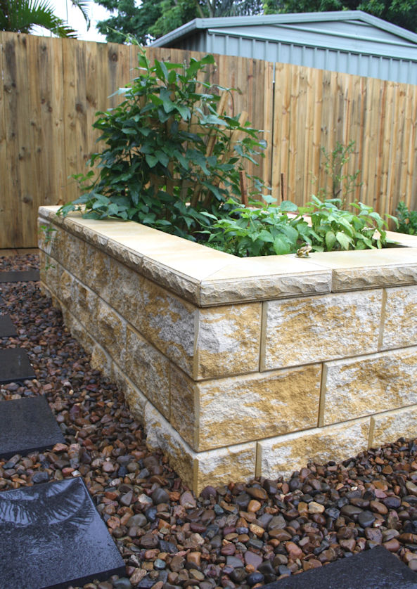 The blocks can be used to build straight or curved walls and steps.
